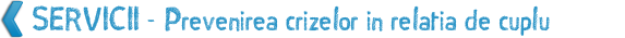 Crizele relationale se pot instala lent, prin acumularea de nemultumiri, frustrari, resentimente - sau brusc, in urma unui eveniment stresant, care nu poate fi gestionat in cuplu (pierderi, boli etc.). Partenerii care au copii au nevoie de abilitati relationale foarte performante, (flexibilitate, toleranta, empatie si capacitate de comunicare) pentru a putea sustine cu succes dezvoltarea acestora, intr-o familie armonioasa. Cine poate beneficia de acest serviciu? Cuplurile care simt ca ceva nu merge in relatia lor, inainte de a se ajunge la o criza (de exemplu, atunci cand partenerii se simt neintelesi, cand nu isi mai gasesc timp pentru ei insisi si pentru relatia lor, cand intervin certuri frecvente sau lipsa de comunicare). Cuplurile care au trecut printr-un eveniment care ar putea destabiliza relatia. Familii in care copiii trec prin perioade dificile (legate de mutarea domiciliului si a scolii, imbolnaviri, trecerea la o noua etapa de dezvoltare, relatiile cu egalii). Ce beneficii aveti? Serviciul de prevenire a crizelor in relatia de cuplu va ofera sansa de a consolida legatura dv, cunoscand punctele tari si punctele slabe ale relatiei, exersand noi moduri de comunicare, invatand cum sa tratati conflictele si construindu-va impreuna o zona tot mai larga de confort. Conflictele dintre parinti pot avea efecte dramatice asupra dezvolarii copiilor, daca sunt repetate sau violente. Atmosfera conflictuala induce un sentiment de nesiguranta care va frana mai tarziu initiativele copilului. Prevenirea crizelor inseamna sa construiesti cu grija si consideratie pentru familia ta un context sigur si primitor. |